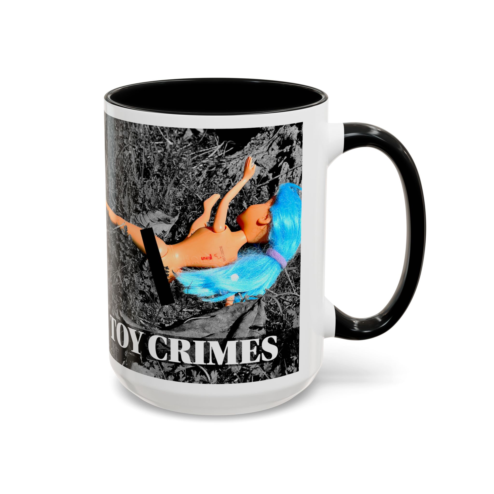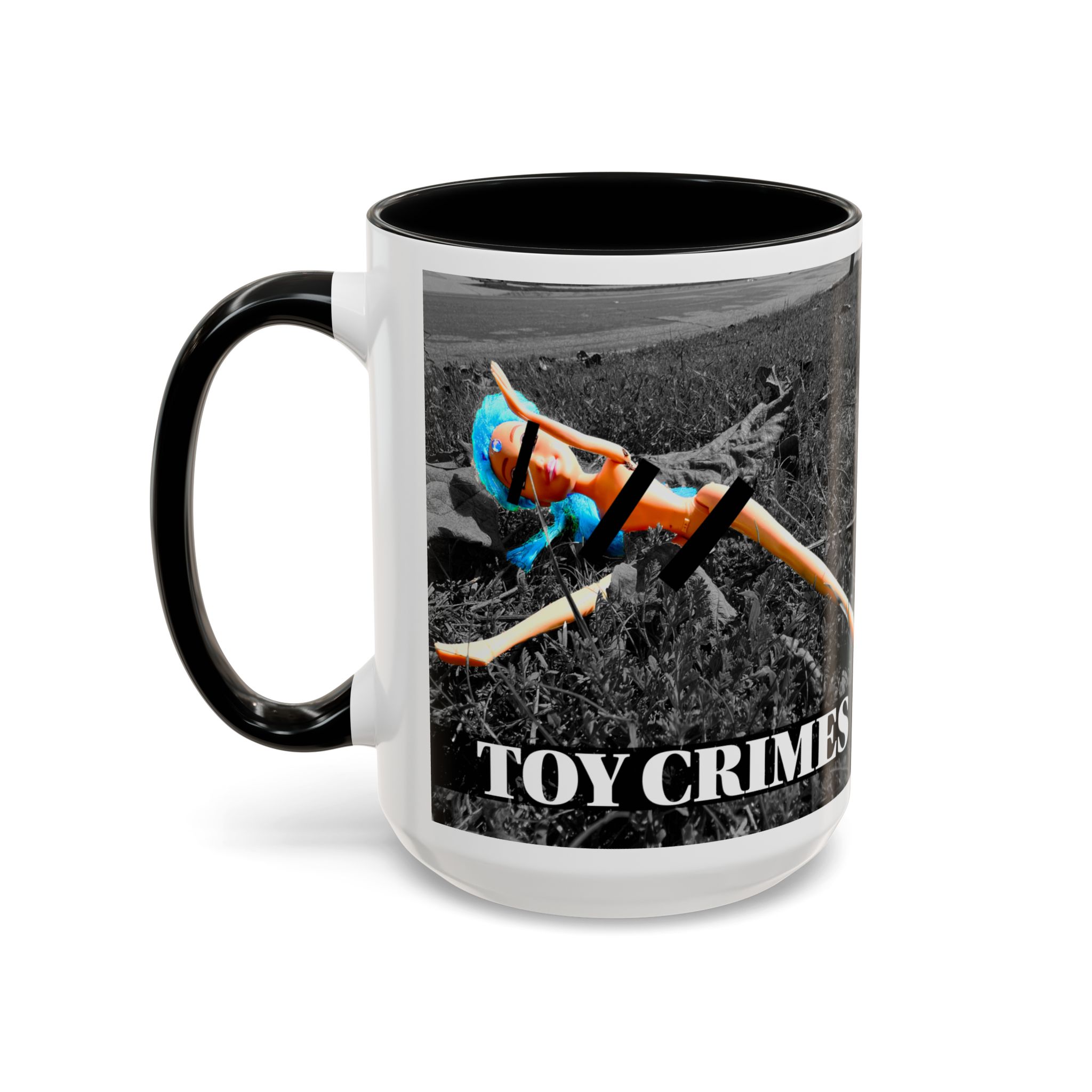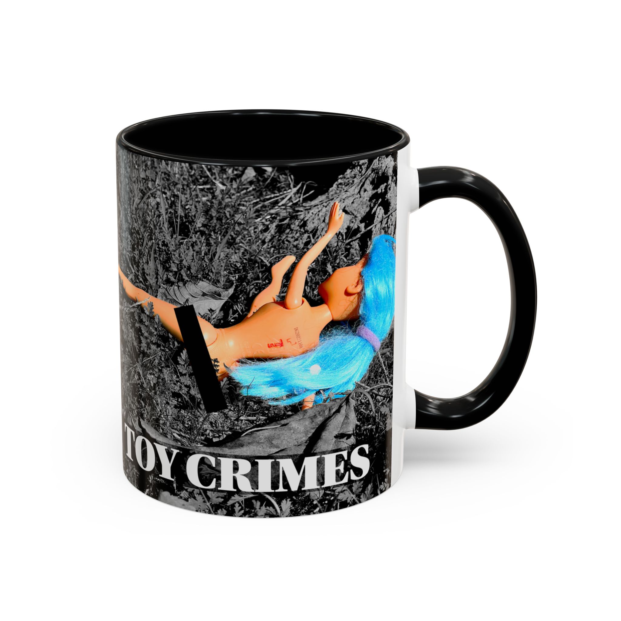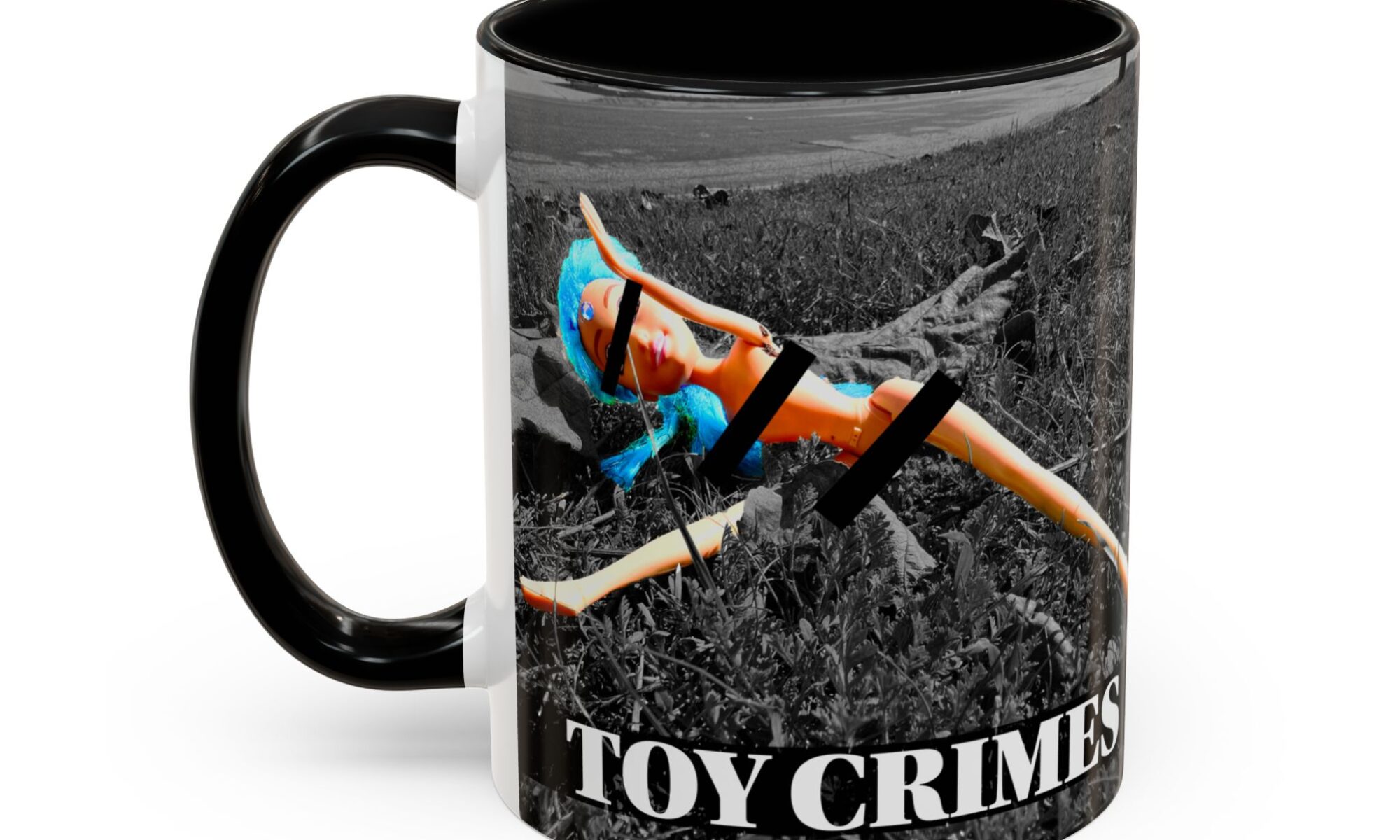 I find that discarded toys can often resemble crime scene photos. Display your love for the macabre with this one of kind coffee mug.