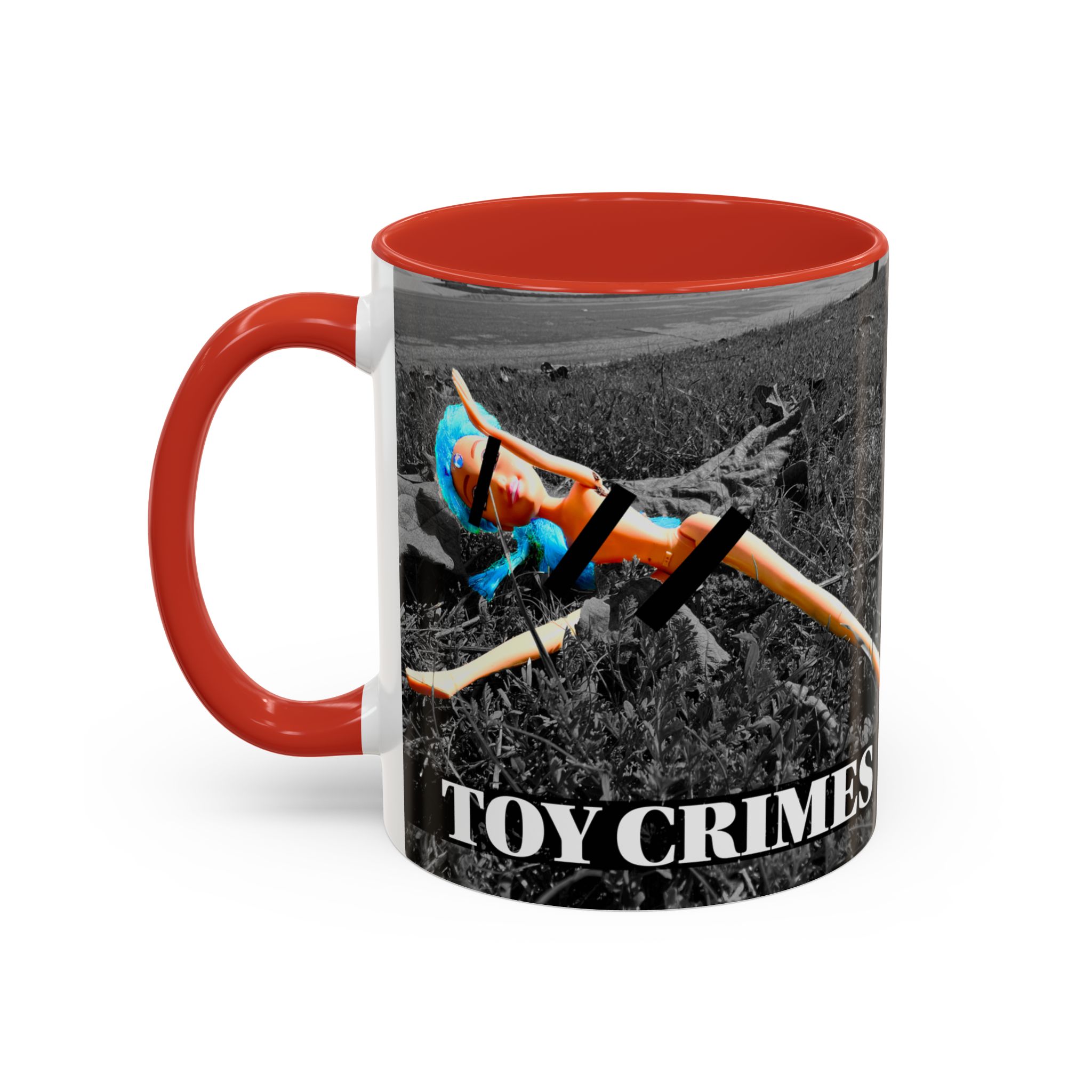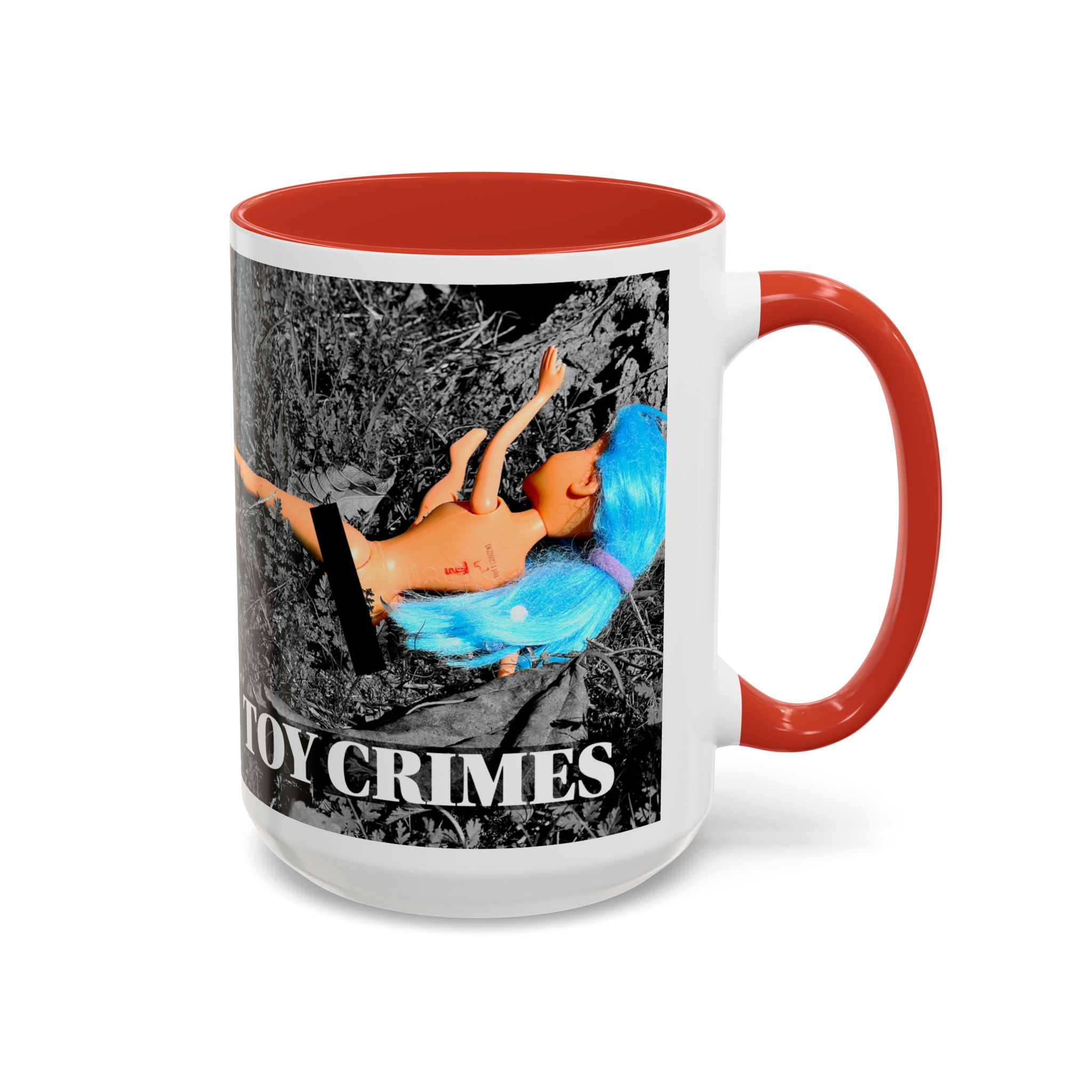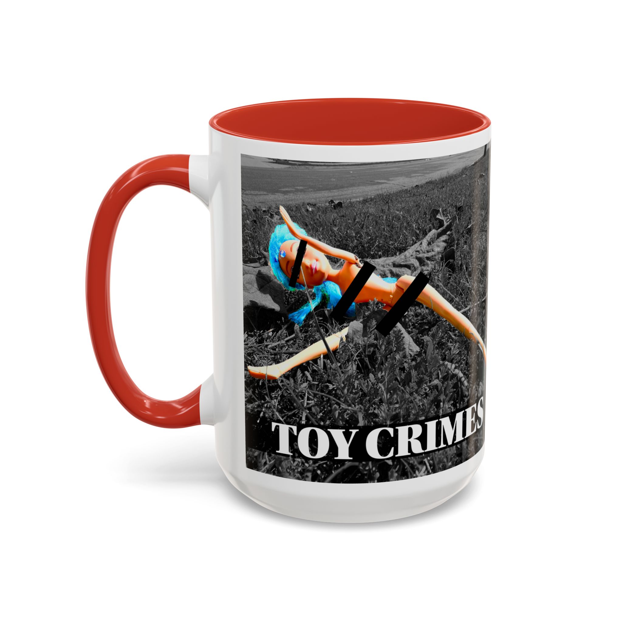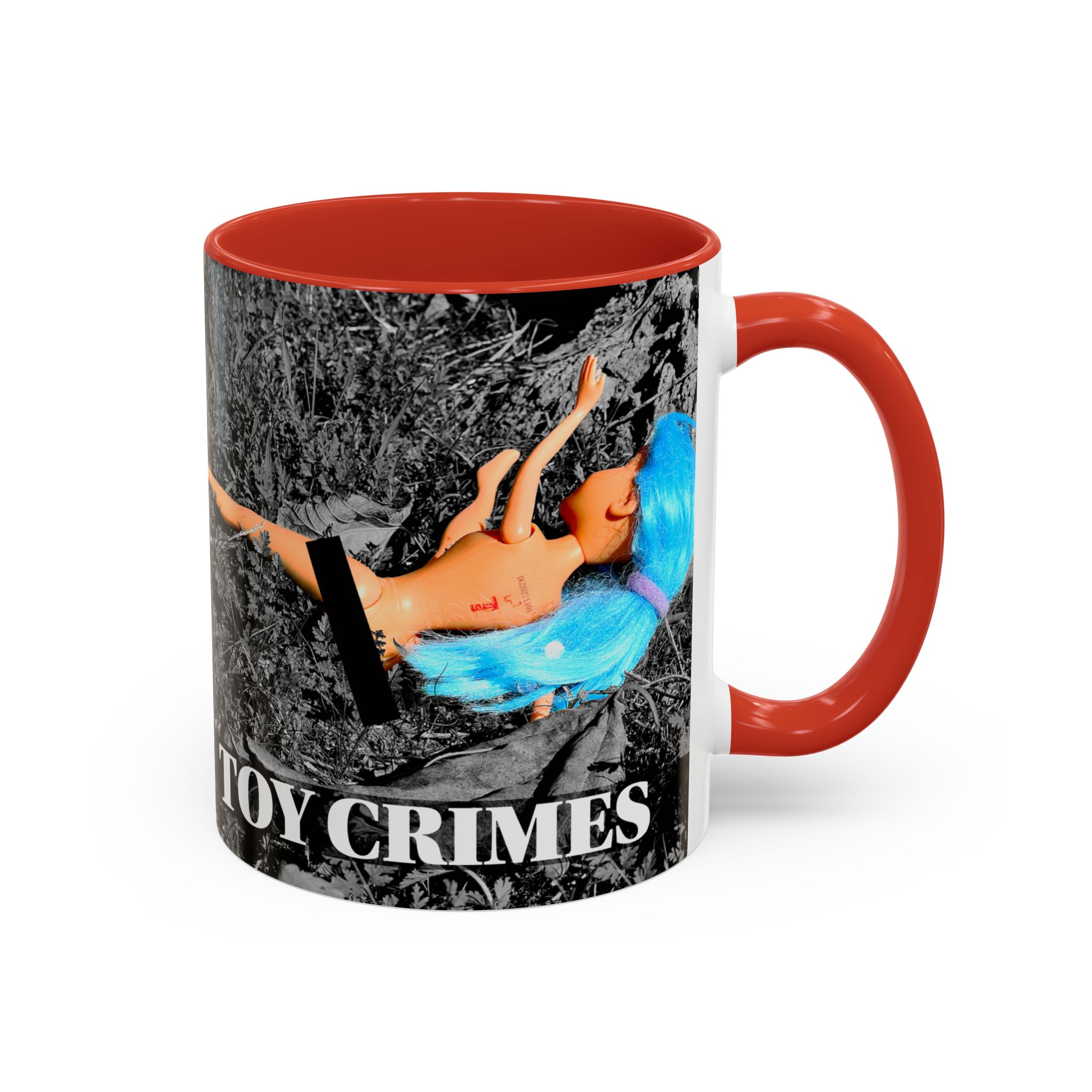 I find that discarded toys can often resemble crime scene photos. Display your love for the macabre with this one of kind coffee mug.